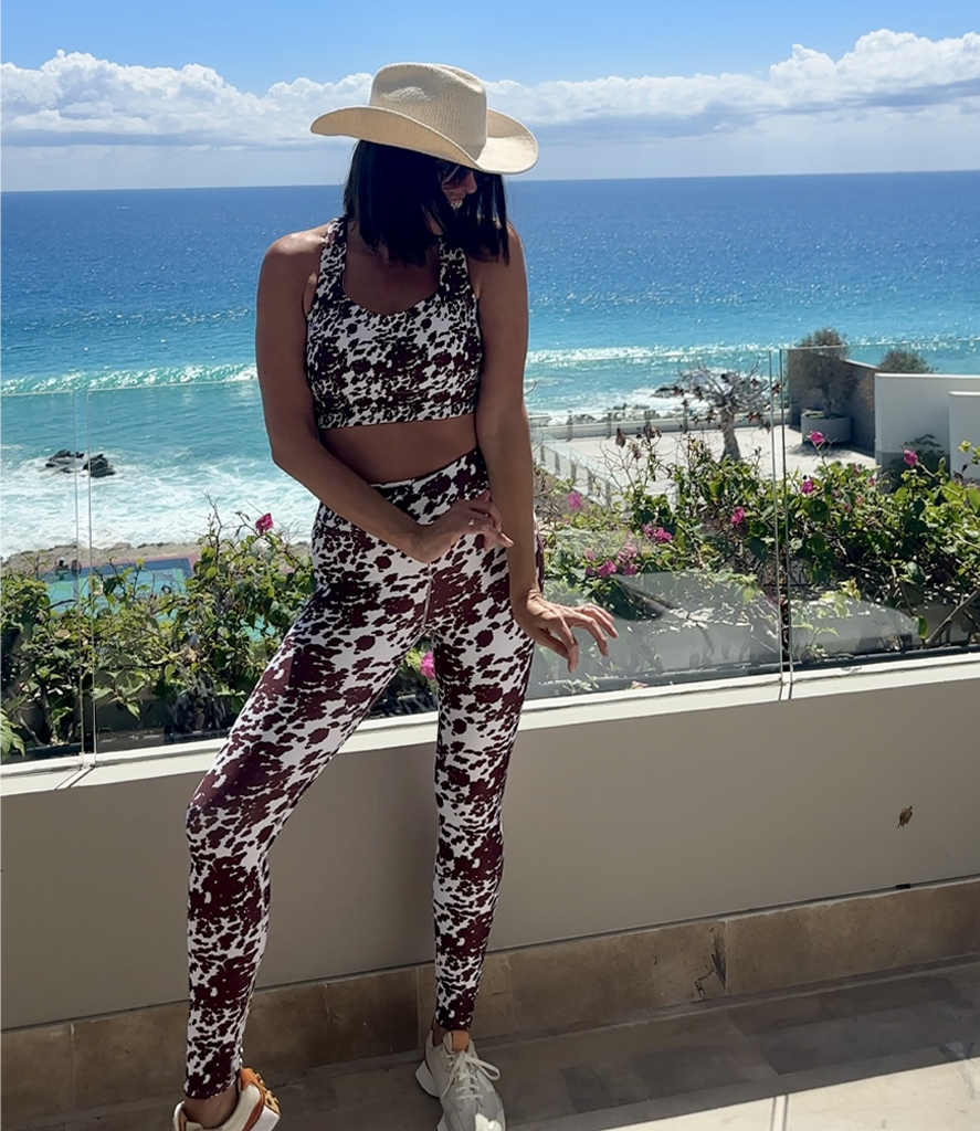 Meet Cowgirl Core. For the girls building strength from the inside out. This set blends rich brown and soft cream in a bold cow print — because wellness can be equal parts strong and soulful.